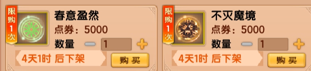 炼妖石、镇荒石:完全不推荐点券购买。用于奖励不变情况下,一块减少一次挑战次数。有需要的话,中后期竞技场、联盟购买。