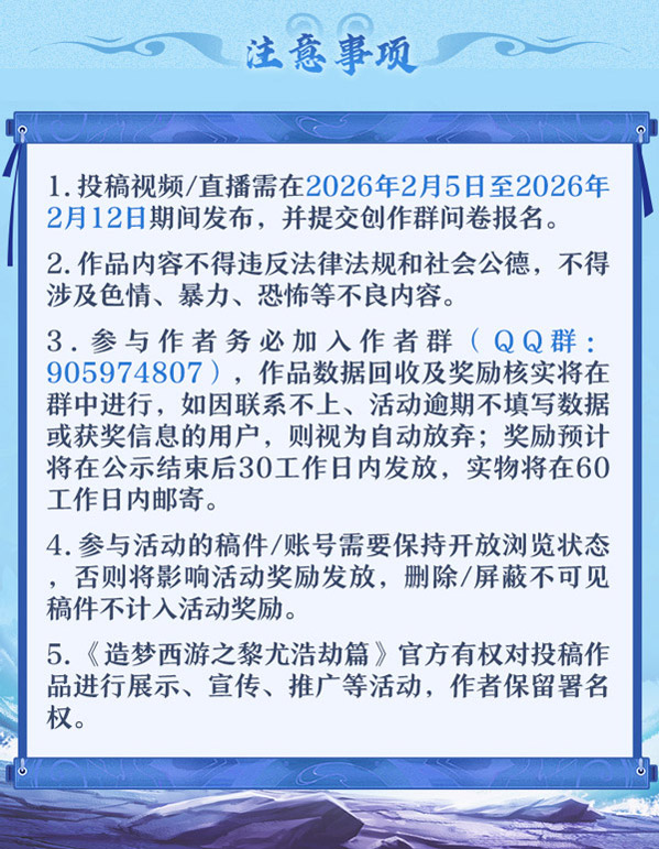 下划查看详情规则,立即在B站、抖音、快手参与投稿,加入创作者群(QQ群号:905974807),报名参赛瓜分奖励吧!