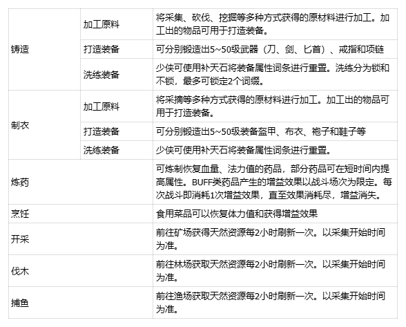 当少侠进入江湖即具备七种生活技能,而生活技能所需材料,一般为原材料、半加工材料。可用于铸造、制衣、烹饪、炼药等生活技能玩法。可在【包打听—博物】中查看材料产地。当然也可以在生产制造过程中,直接查看所需材料详情,了解材料出处。
