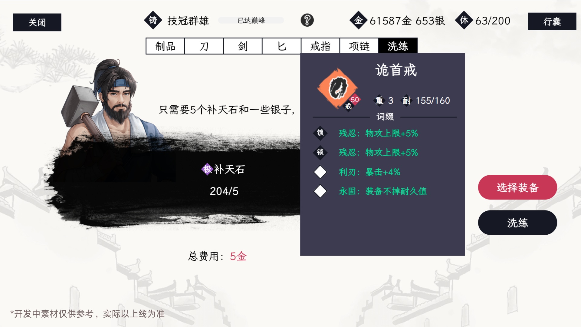 少侠可前往NPC“铁匠”或者“裁缝”处洗练装备属性,每件装备的词条均随机展示,无固定属性